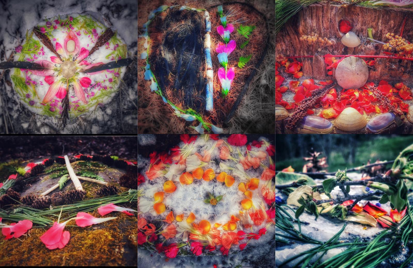 This nature shrine was inspired by the Druid symbol “Awen.” Awen is a symbol made up of three lines with three dots on top. Much like the three sticks I have placed here, and the three flowers hovering above. In the Druid tradition, it is supposed to represent energy coming down from the sun. The…