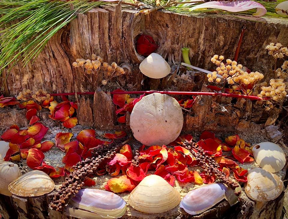 When I went out to build this altar at the end of April I wasn’t even consciously aware of how close to the holiday Beltane it was. Beltane is a Celtic pagan holiday falling on the first of May. It is said when the veils between this world and the fairy world are at their thinnest during this time, allowing for more interactions between humans and the faerie beings.