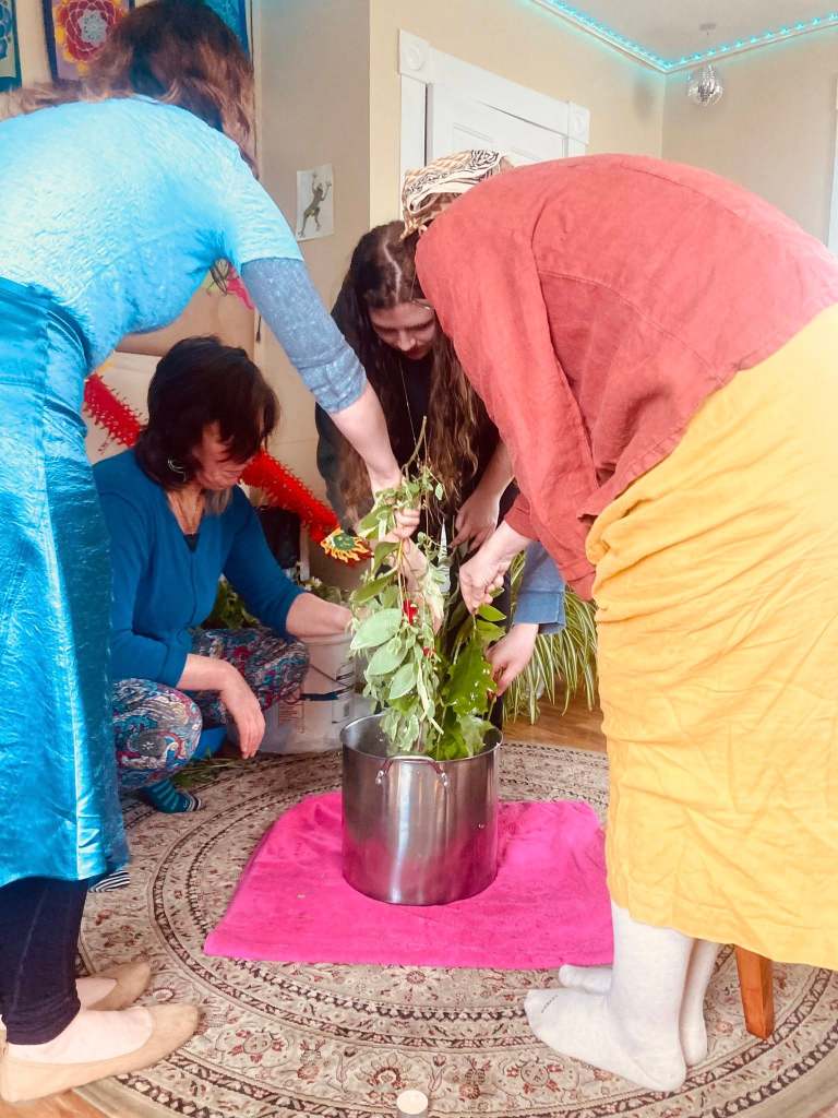 Here are a few photos of the herbal foot bath prepared so lovingly for me that day. It felt so amazing to be pampered and loved in this unique way. It definitely helped me prepare mentally for the coming ceremony. So much gratitude for this lovely experience and these amazing women. Humans are naturally social animals having thrived only in community, and with the aide of each other throughout history. Our focus on “individualism,” and our growing isolation is deeply affecting our psyches. Hiding behind screens of the internet, Television, and Social Media, we often forget to actually reach out to one another. To gather, to do creative and meaningful things together. I say we bring it back! This, in turn, will also help reconnect us to our place on this beautiful planet, and in the network of all living beings, who could really use our love and support right now.